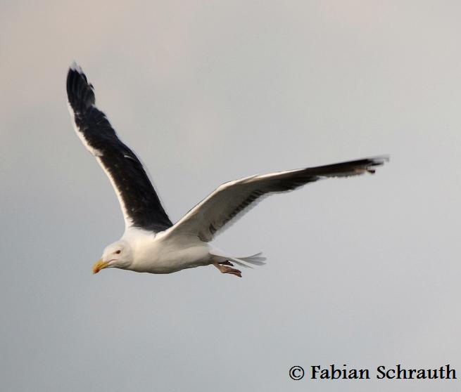 Die Mantelmöwe lebt bei uns an den Küsten, nur sehr selten kann man sie im Binnenland beobachten.